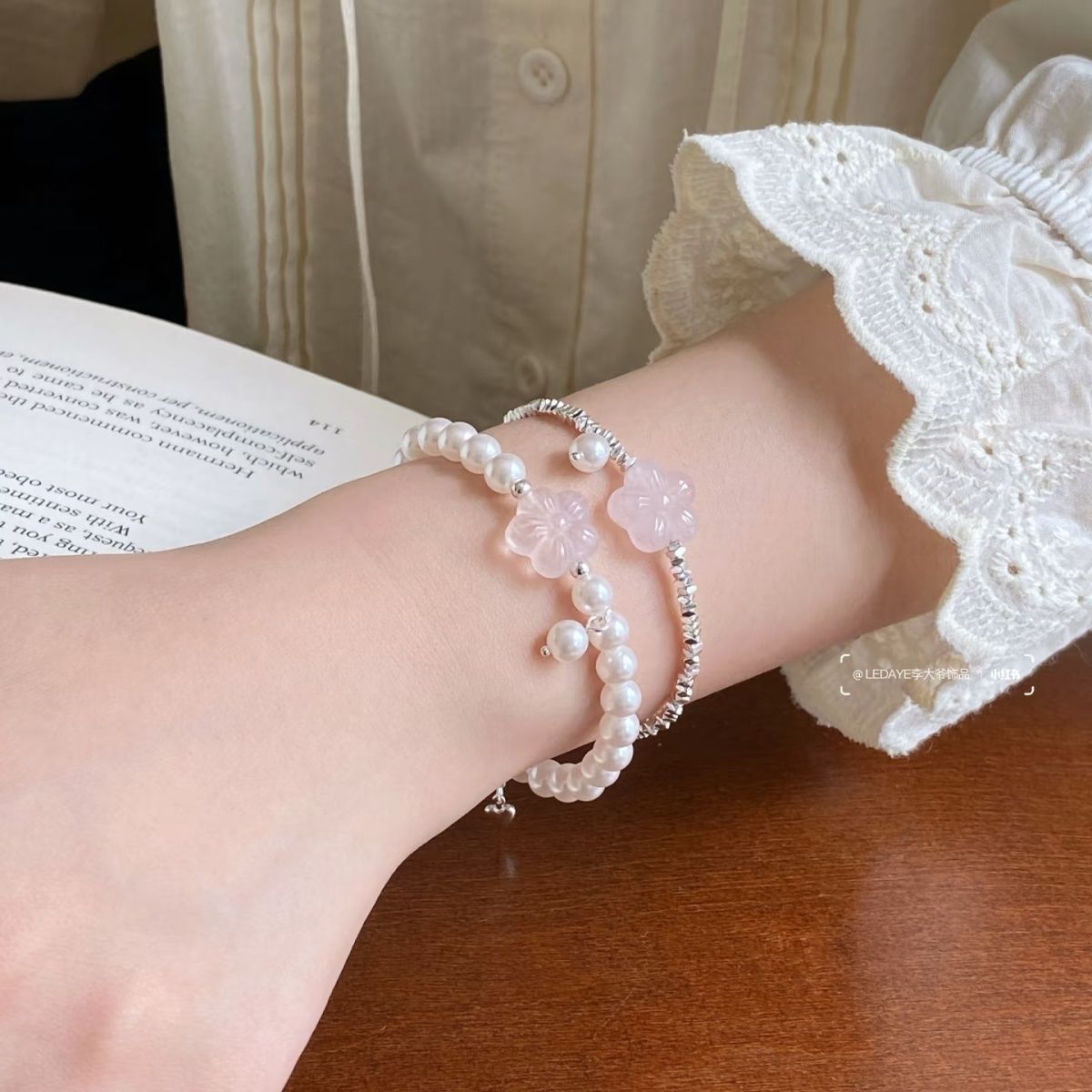 粉花碎银手串叠戴少女感显白韩系ins精致简约轻奢爆
